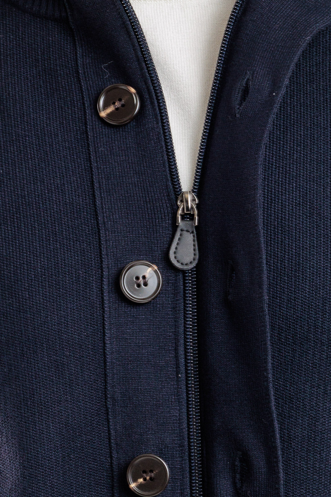 Un cardigan da uomo estremamente pratico e caldo, ideale per la collezione Autunno/Inverno. Firmato O.I.T. Only Italian Tricot, questo capo in tinta unita si distingue per la sua doppia funzionalità: la chiusura principale è con 7 bottoni, ma è arricchito anche da una zip interna che ne ottimizza la protezione termica. Presenta un avvolgente collo alto e due comode tasche frontali. La vestibilità comfort garantisce una linea rilassata e un'ottima libertà di movimento.