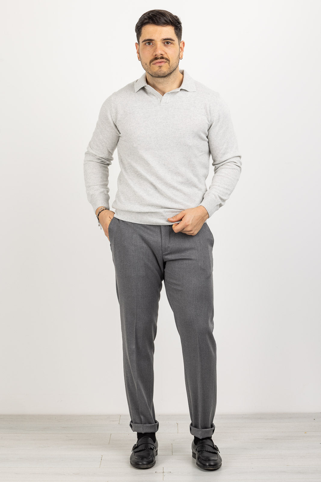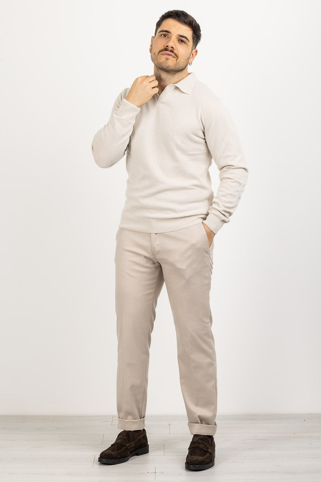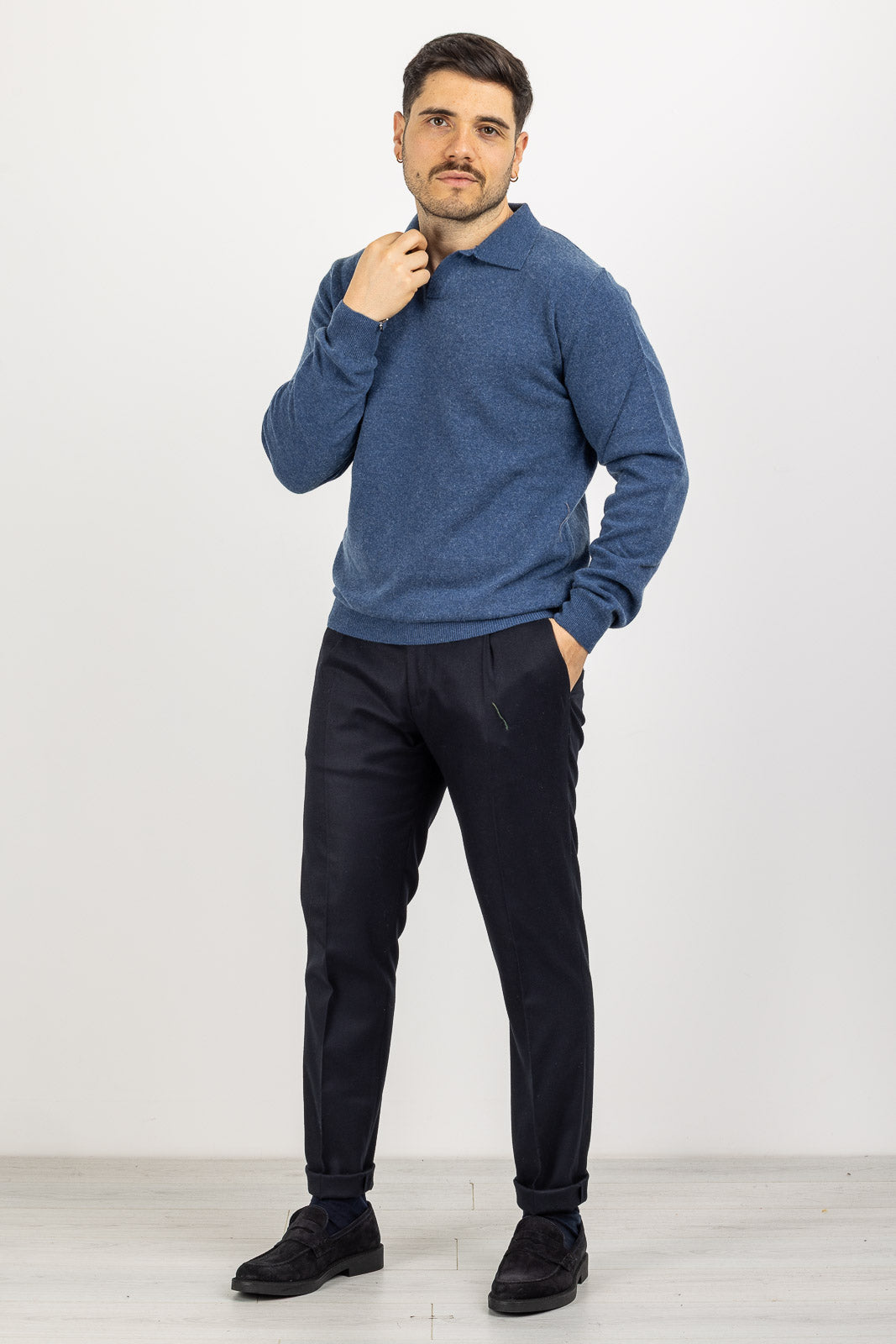 Un maglione che unisce la comodità del pullover all'eleganza di un capo con colletto, ideale per la collezione Autunno/Inverno. Interamente Made in Italy e firmato BARULO, questo maglione Polo Derby è realizzato in pregiato tessuto misto cashmere, garantendo una morbidezza eccezionale e un calore avvolgente. Il design in tinta unita è caratterizzato dal collo polo senza bottoni, che offre un look pulito e raffinato. La vestibilità regular comfort assicura una linea classica, rilassata e un agio superiore.