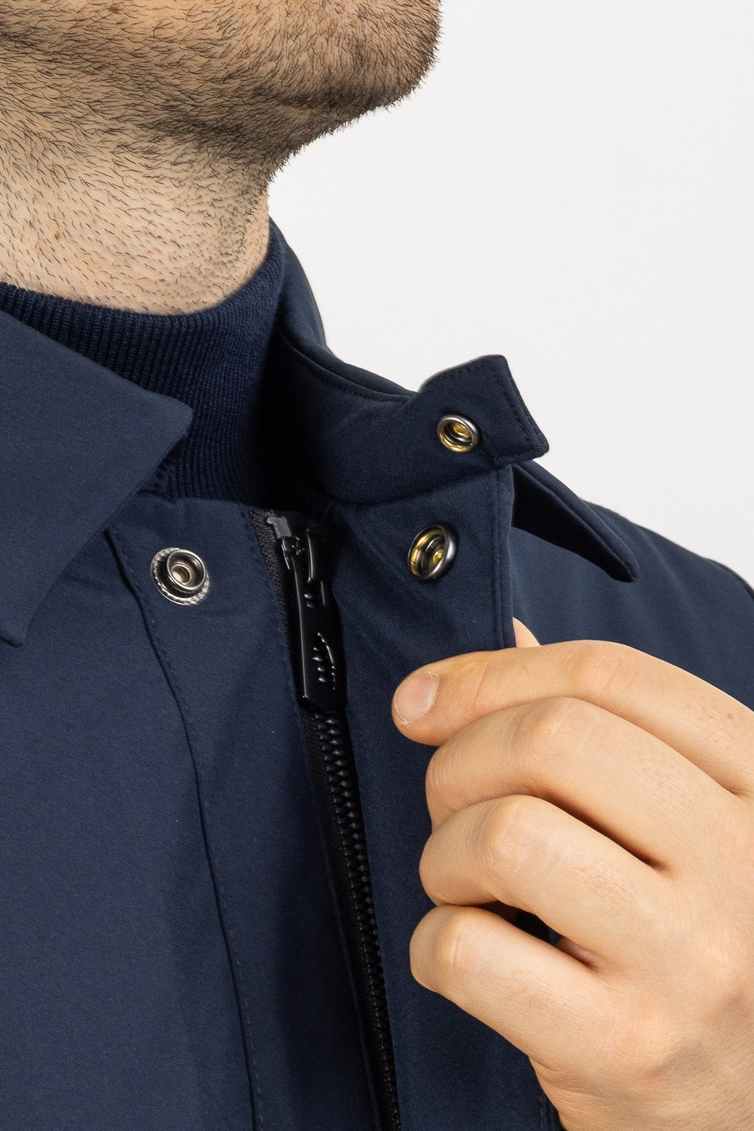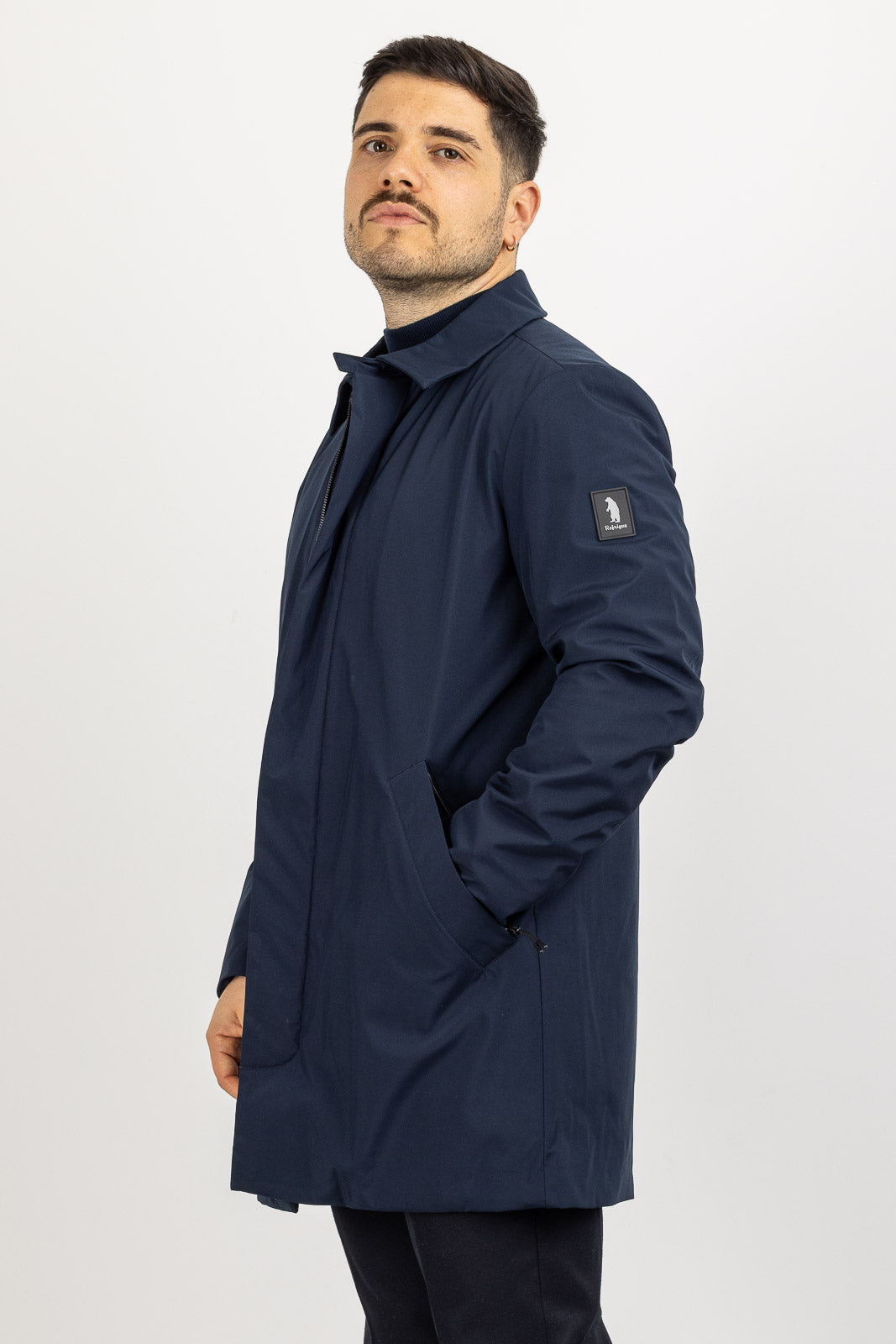 Un capo elegante e protettivo, perfetto come soprabito leggero per la collezione Autunno/Inverno. Firmato REFRIGUE, questo spolverino in tinta unita è realizzato in tessuto tecnico antivento e impermeabile, ideale per proteggere dagli agenti atmosferici senza appesantire. Il design è curato, con un classico collo a camicia che gli conferisce un aspetto più formale rispetto ai giubbotti sportivi. La chiusura è versatile e sicura, con zip e patta protettiva con bottoni a clip. Presenta due tasche esterne e il discreto logo del brand è applicato sulla manica. La vestibilità regular assicura una linea comoda e classica.
