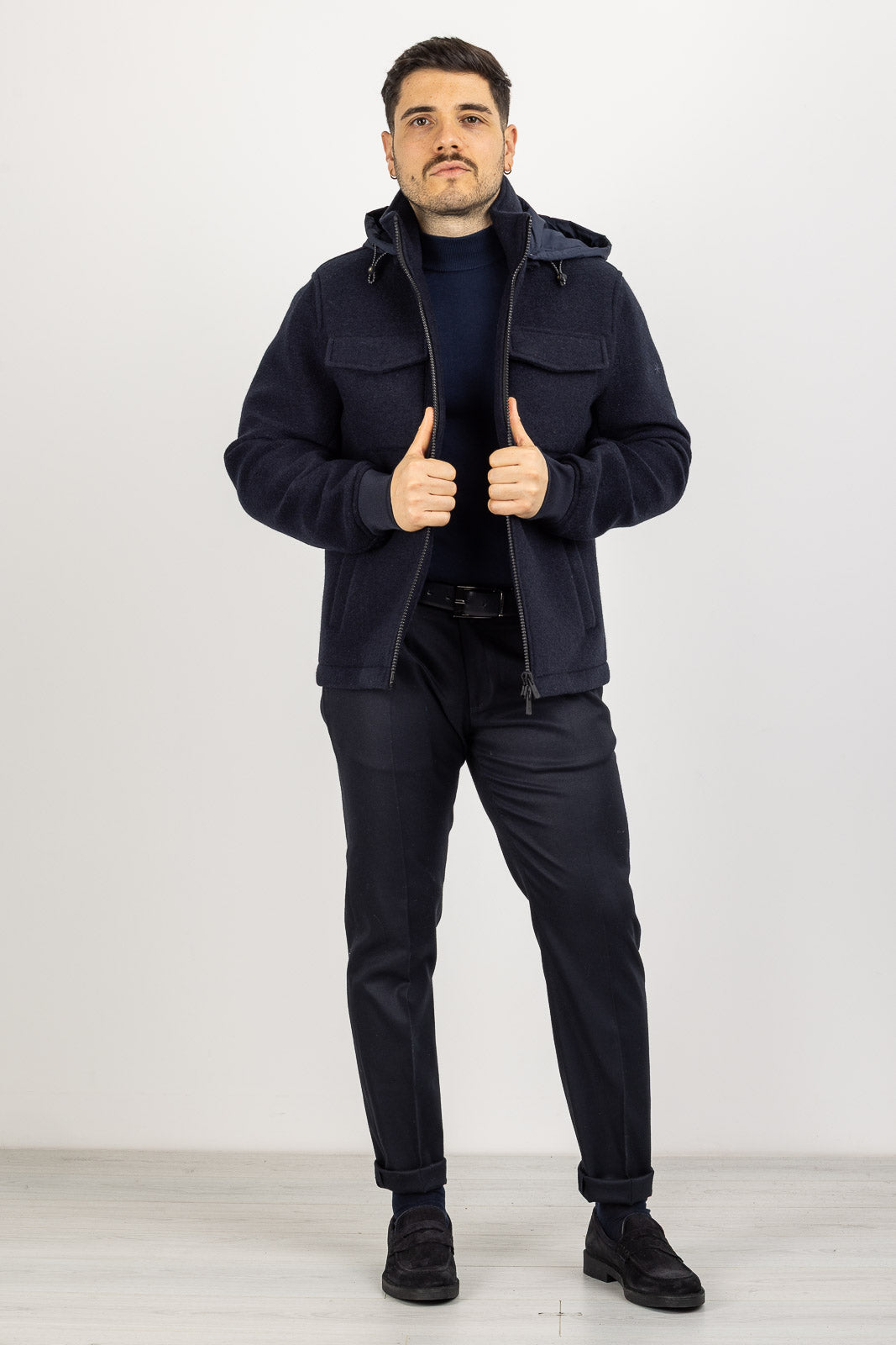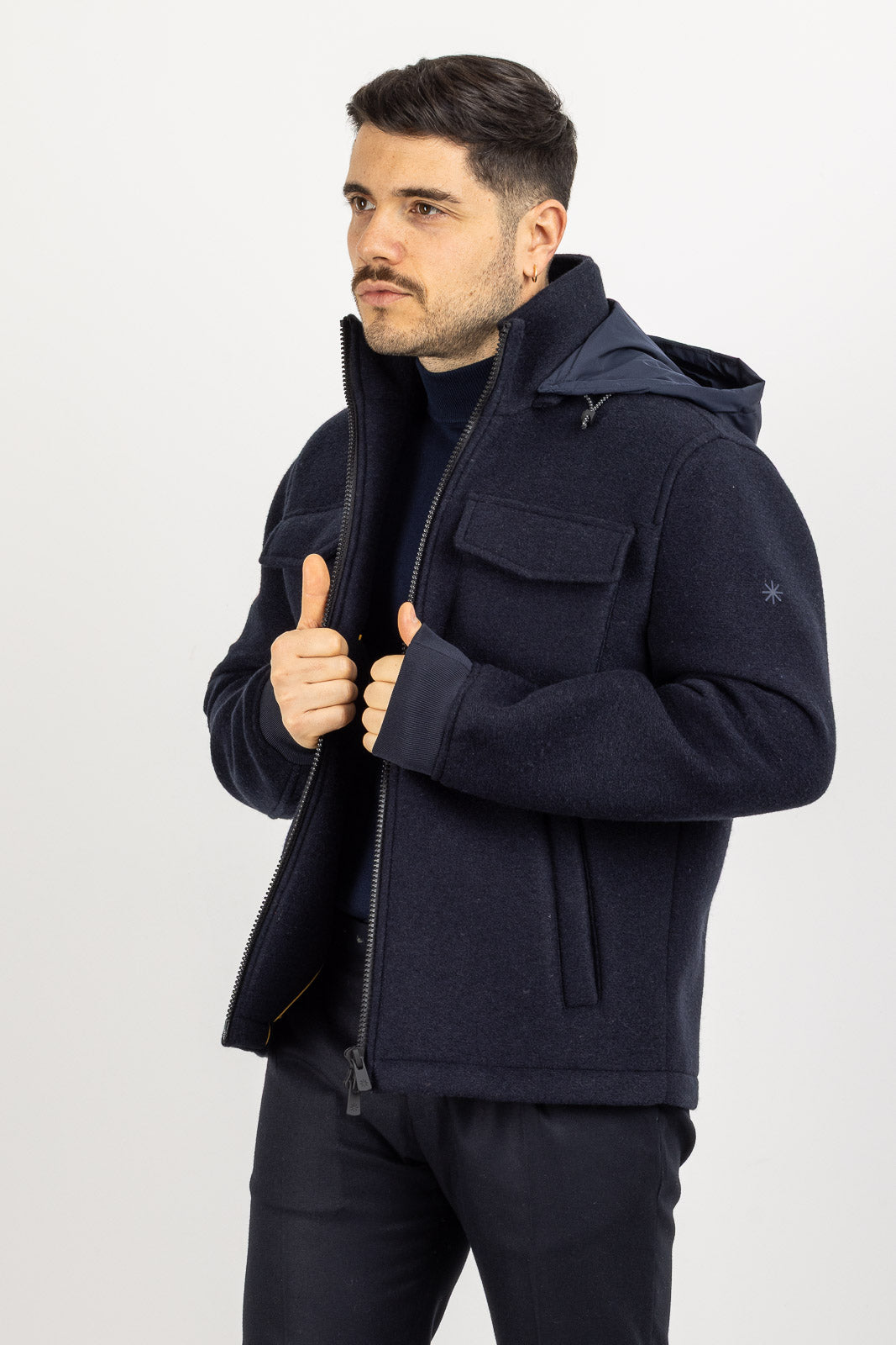 Questo capo corto in tinta unita è realizzato in caldo tessuto misto lana, che conferisce un aspetto sofisticato e un ottimo isolamento termico. Il design è versatile grazie al cappuccio removibile, che permette di adattare il look alle condizioni atmosferiche e all'occasione. La chiusura è affidata a una zip frontale. La funzionalità è garantita dalla presenza di ben quattro tasche esterne, per la massima capienza. Il piccolo logo Manuel Ritz è applicato sulla manica, a sigillare l'autenticità del brand. La vestibilità regular assicura una linea comoda e un comfort ottimale.