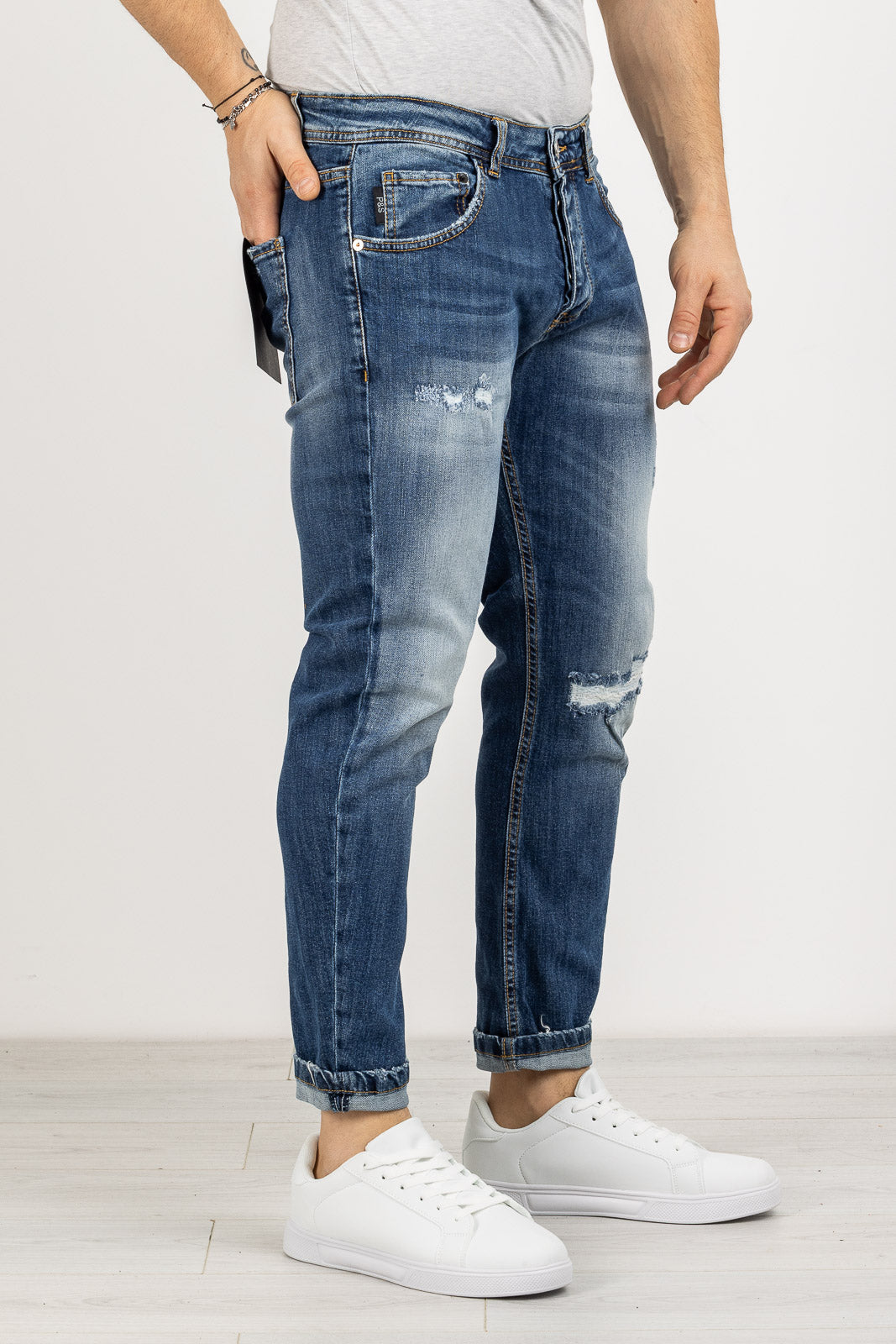 Un jeans dal carattere deciso e moderno, perfetto per la collezione Autunno/Inverno. Interamente Made in Italy e firmato Patrick & Son, questo modello in denim incarna lo stile contemporaneo con dettagli audaci. Presenta il classico design a 5 tasche e una silhouette aderente grazie alla vestibilità skinny fit. Il capo è valorizzato da rotture ed abrasioni che gli conferiscono un look vissuto e di tendenza. Si tratta di un jeans Capri