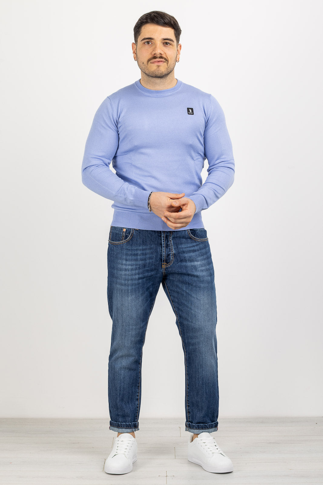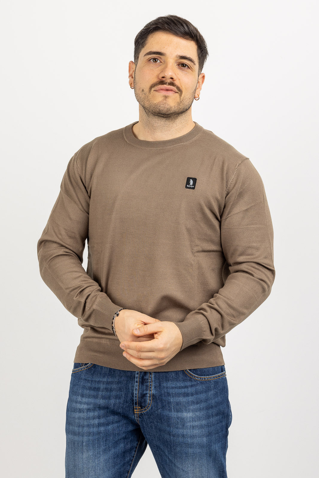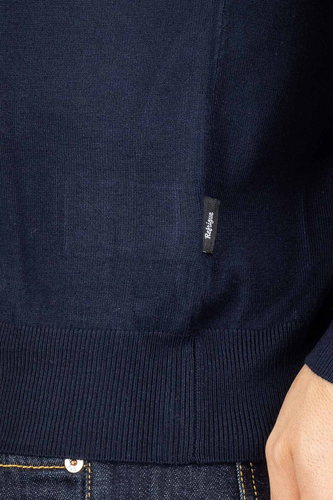 Un maglioncino essenziale e raffinato, perfetto per completare i look della collezione Autunno/Inverno. Firmato REFRIGUE, questo capo in tinta unita presenta un classico girocollo e una lavorazione a tessuto rasato (liscio e uniforme), che lo rende ideale per abbinamenti formali o casual. Il discreto logo del brand è posizionato per certificarne l'autenticità. La vestibilità slim comfort assicura una linea moderna, aderente ma non costrittiva, che valorizza la figura.