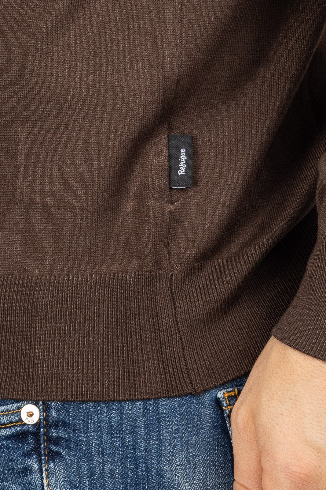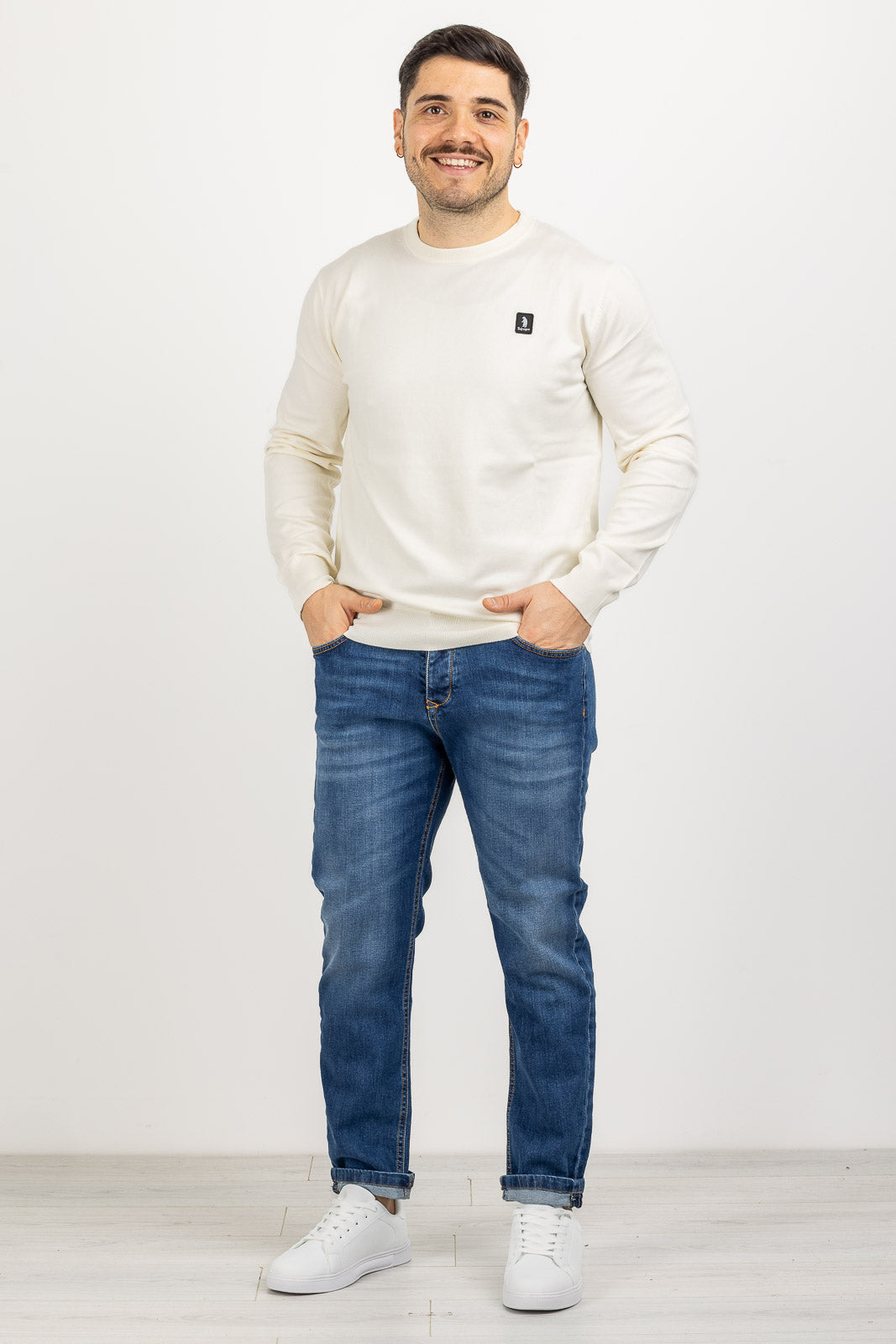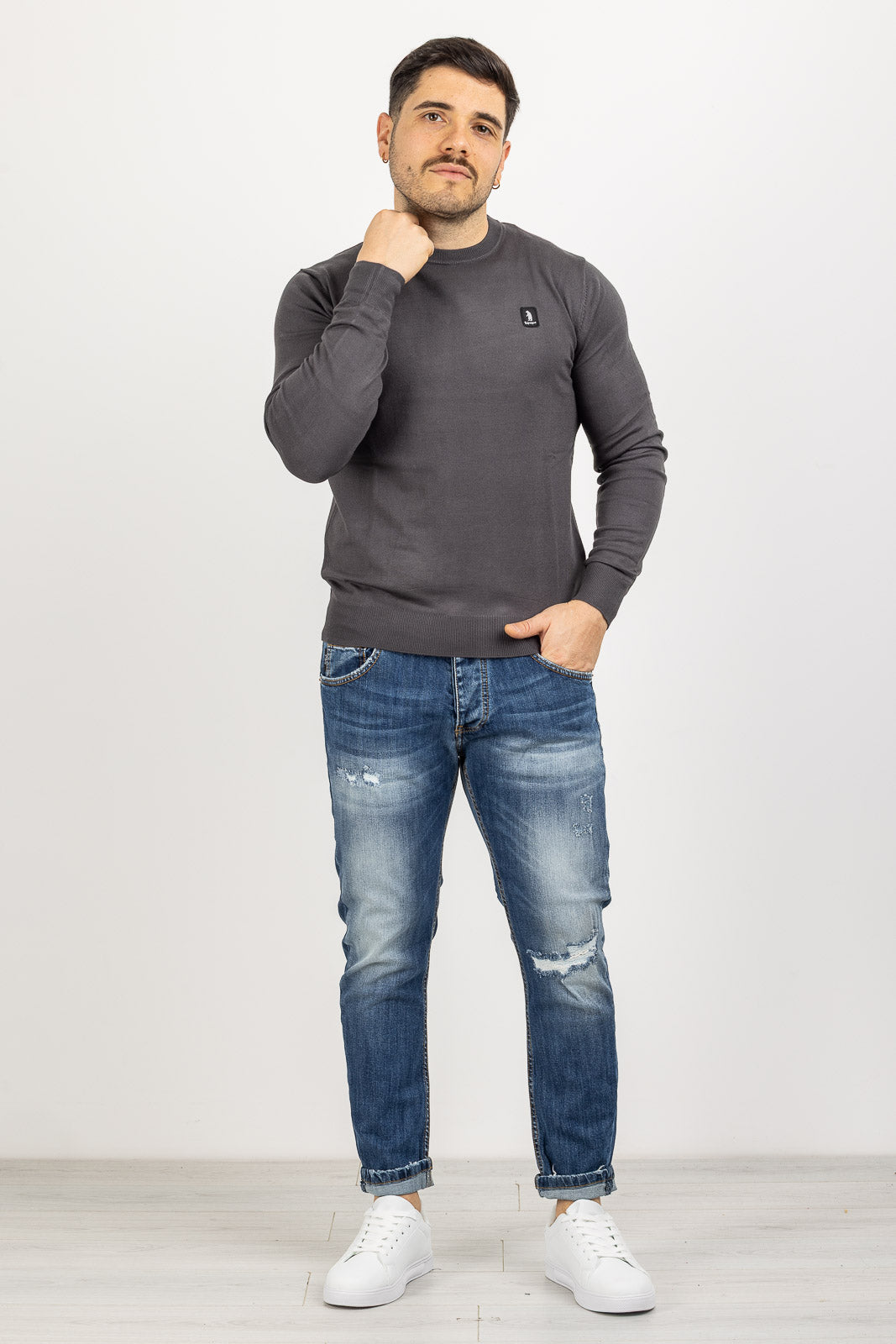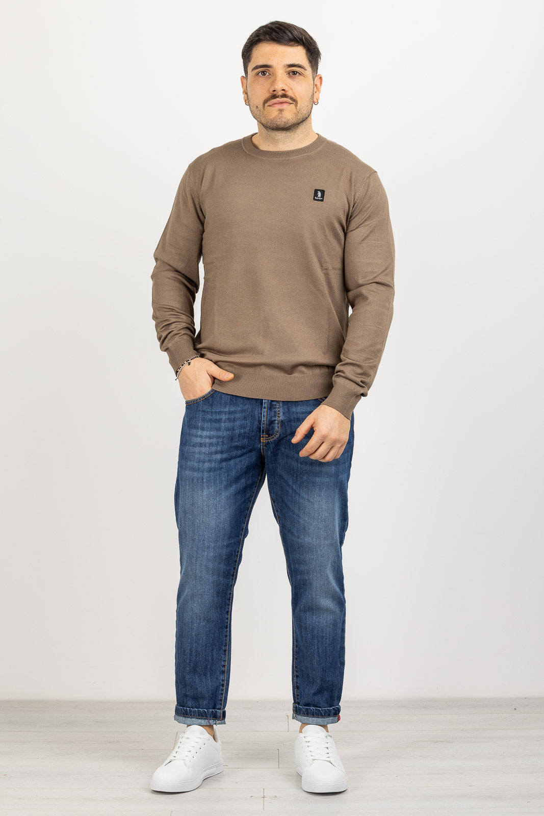 Un maglioncino essenziale e raffinato, perfetto per completare i look della collezione Autunno/Inverno. Firmato REFRIGUE, questo capo in tinta unita presenta un classico girocollo e una lavorazione a tessuto rasato (liscio e uniforme), che lo rende ideale per abbinamenti formali o casual. Il discreto logo del brand è posizionato per certificarne l'autenticità. La vestibilità slim comfort assicura una linea moderna, aderente ma non costrittiva, che valorizza la figura.