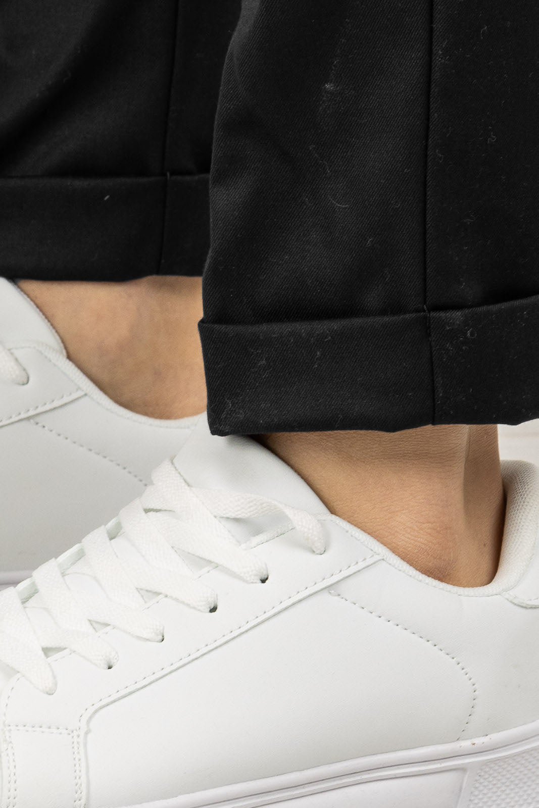 Il pantalone in tinta unita presenta la classica tasca America (o tasca obliqua) sul davanti e due tasche dietro. La vestibilità è resa estremamente confortevole grazie all'elastico laterale in vita, che garantisce un fit adattabile. La chiusura è gestita con zip e bottone. La vestibilità slim capri offre una silhouette moderna, con un taglio leggermente accorciato.
