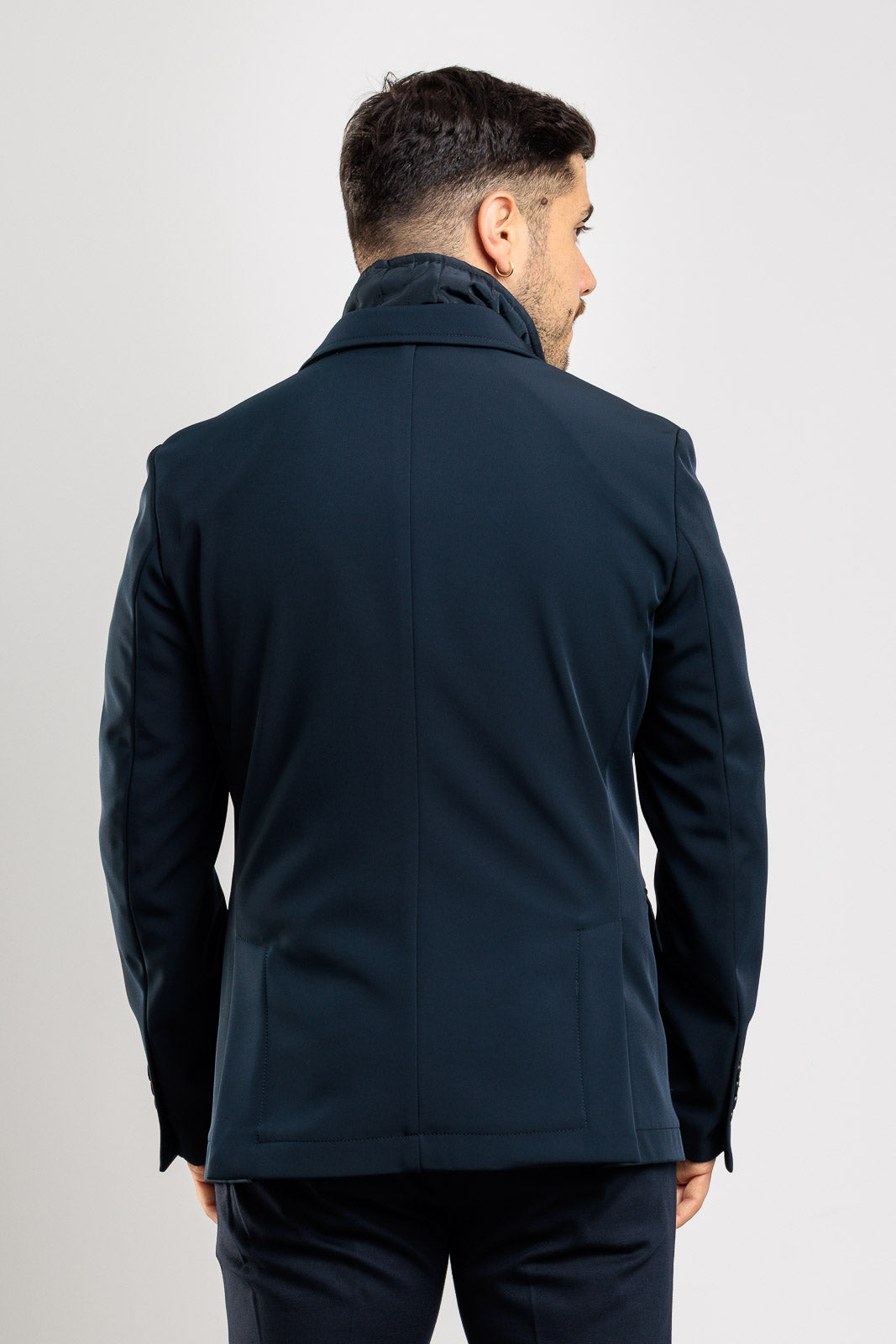 Un capospalla versatile ed elegante, ideale per affrontare la collezione Autunno/Inverno con stile. Questo giaccone da uomo si presenta con il taglio formale di un blazer e l'ingegnosità di un capo funzionale. Realizzato in tinta unita, il suo elemento distintivo è la pettorina interna removibile, che offre un calore aggiuntivo e un look a strati quando serve. La chiusura esterna è classica a bottoni, mentre la pettorina si chiude con una zip. I due spacchetti sul retro garantiscono una vestibilità sartoriale e maggiore libertà di movimento. Un capo essenziale, interamente Made in Italy.