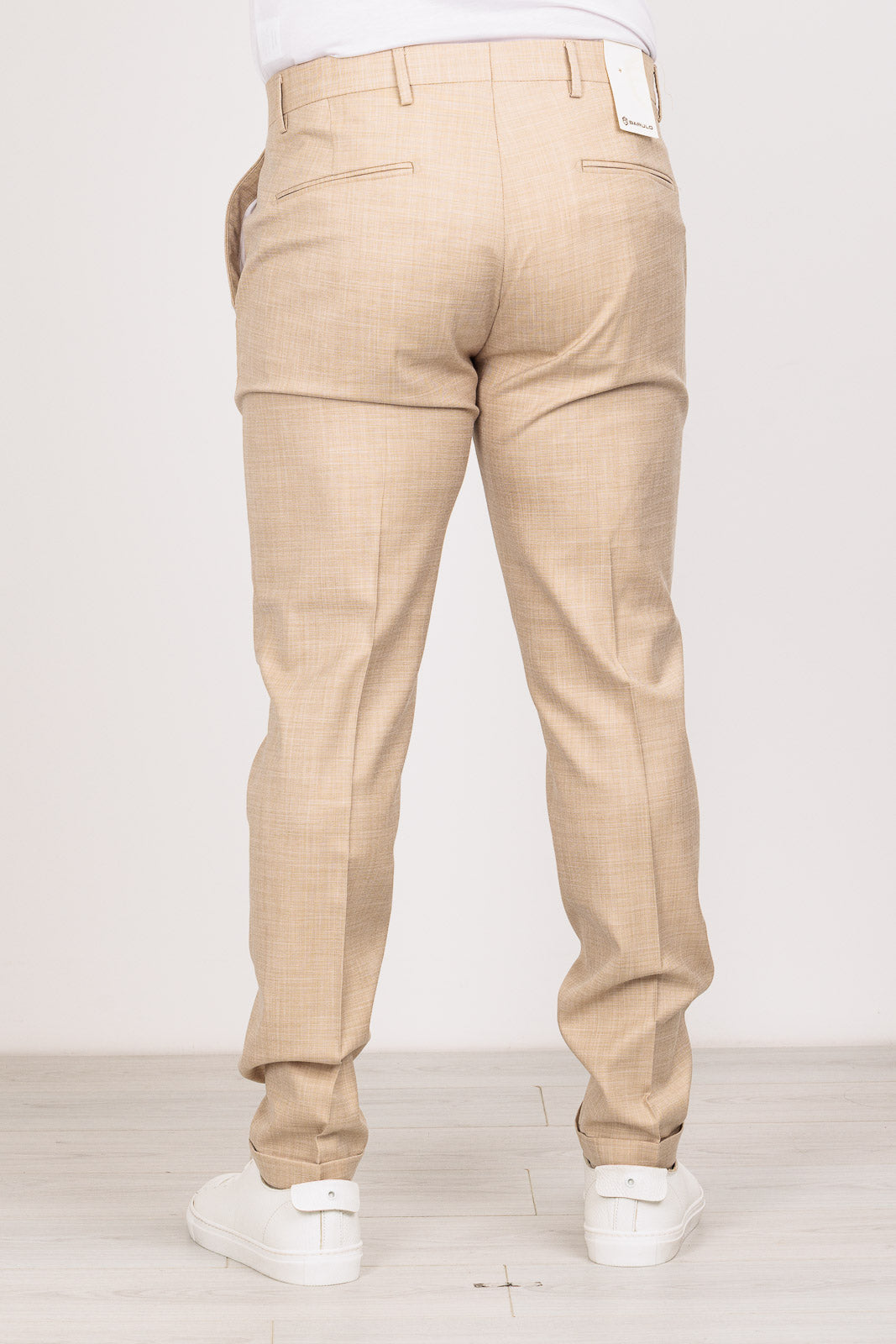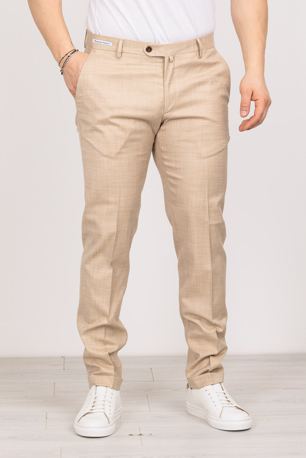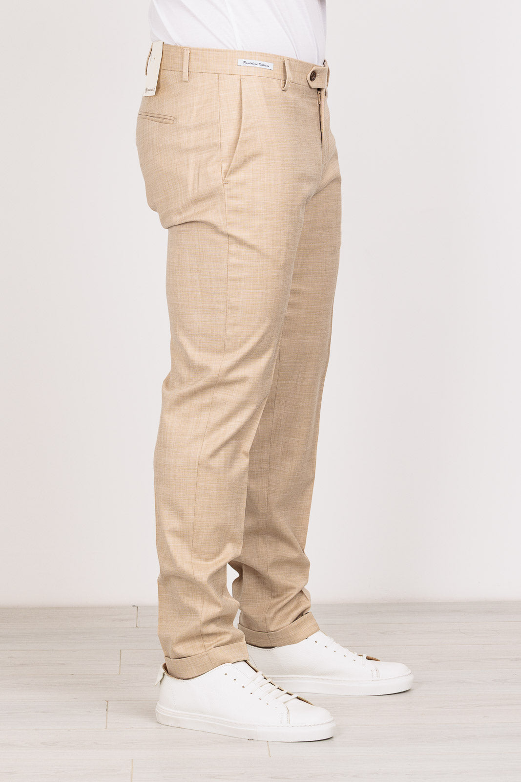 Grazie alla predominanza di fibre tecniche miscelate alla viscosa, questo pantalone è un vero alleato contro il caldo: favorisce la dispersione dell'umidità e mantiene la piega perfetta anche dopo molte ore di utilizzo. Il fondo è rifinito con precisione sartoriale, pronto per essere indossato con o senza risvolto a seconda del gusto personale.