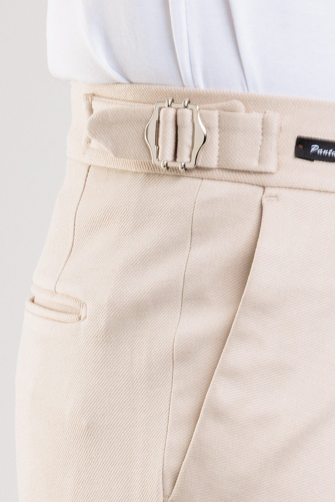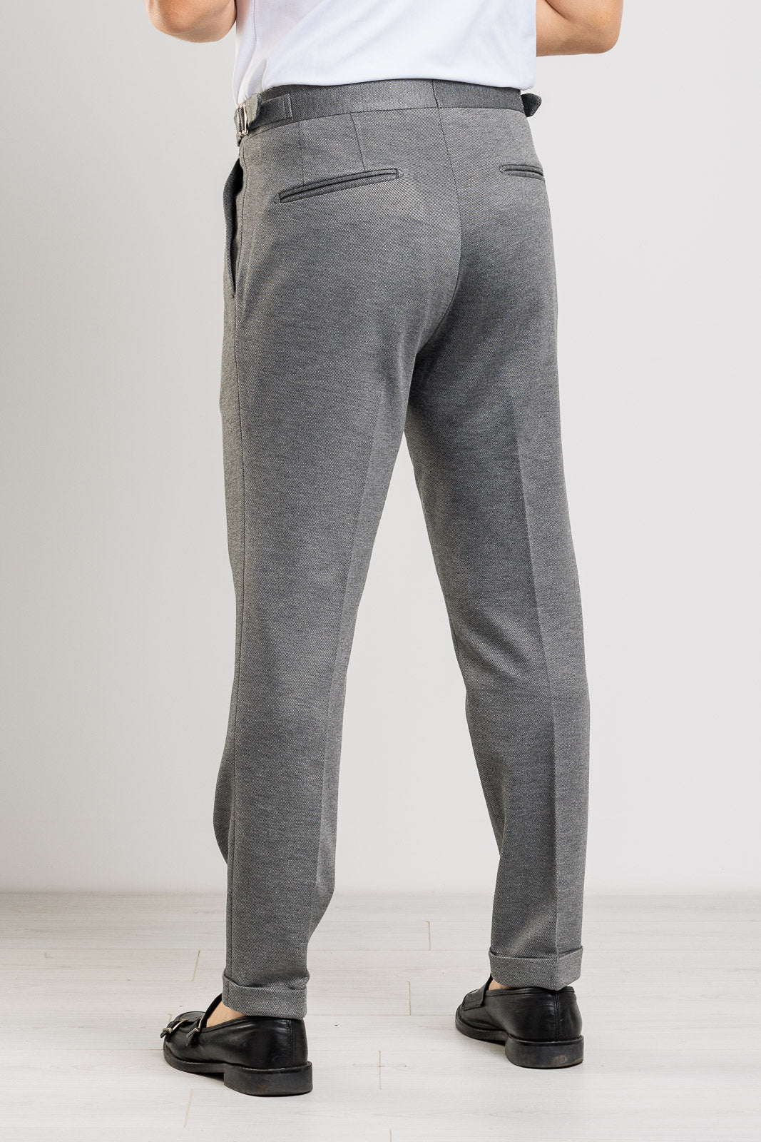Un modello sartoriale che unisce l'eleganza classica a un comfort ottimale, perfetto per la stagione più fredda. Questo capo, ideale per la collezione Autunno/Inverno, è realizzato in pregiato tessuto Punto Milano diagonale, che offre una mano morbida, ottima tenuta e calore. Il taglio è valorizzato dalle pinces sul davanti, che conferiscono un look curato e contemporaneo. È dotato di comode tasche America e si chiude con zip e doppio bottone. L'aggiunta dei tiranti laterali (regolatori in vita) permette una vestibilità ancora più precisa senza l'uso della cintura. La vestibilità slim comfort assicura una silhouette moderna che valorizza la figura senza stringere. Un capo di alta qualità interamente Made in Italy.